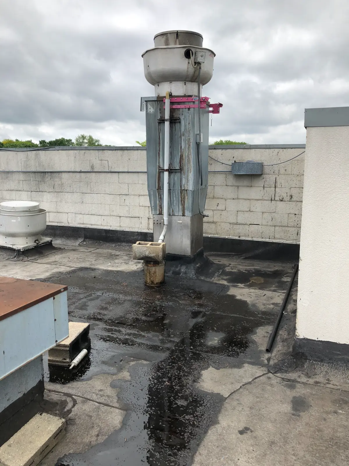 - Roof damage caused by the grease “eating” away at the roof membrane